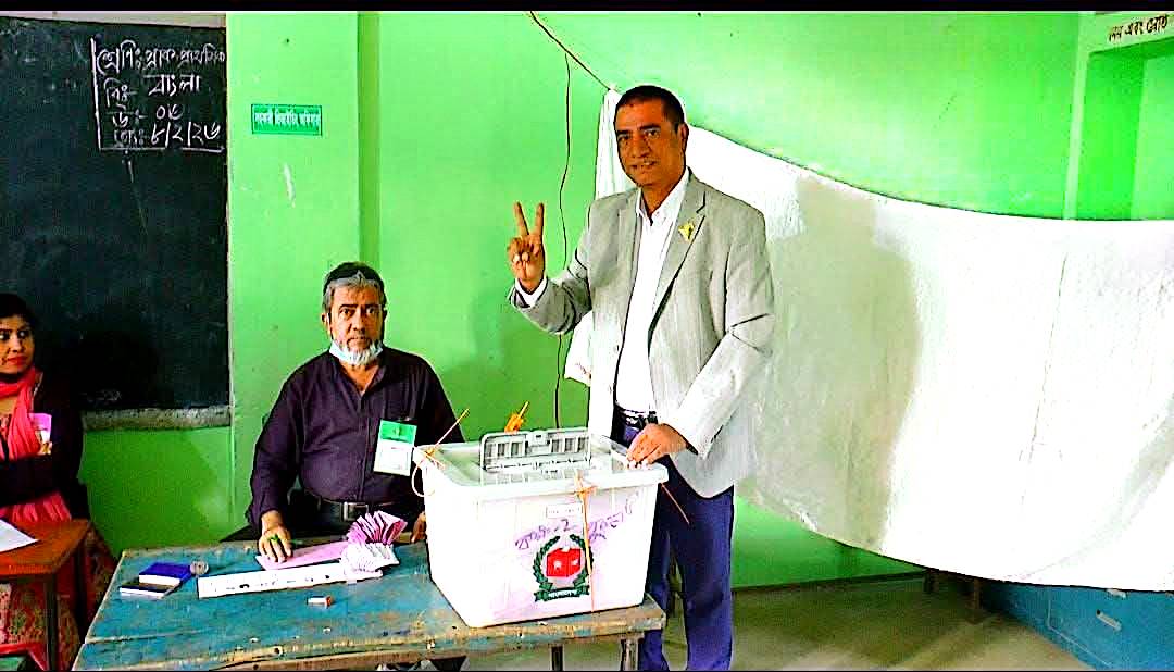 কৈয়গ্রামে নিজ কেন্দ্রে ভোটাধিকার প্রয়োগ করলেন এনামুল হক এনাম